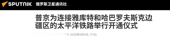 根据俄罗斯卫星通讯社9月4日报道,普京在抵达远东地区之后,通过视频连线的方式,对连接“雅库特-哈巴罗夫斯克”之间的一段长达531公里的太平洋铁路,举行了开通仪式。